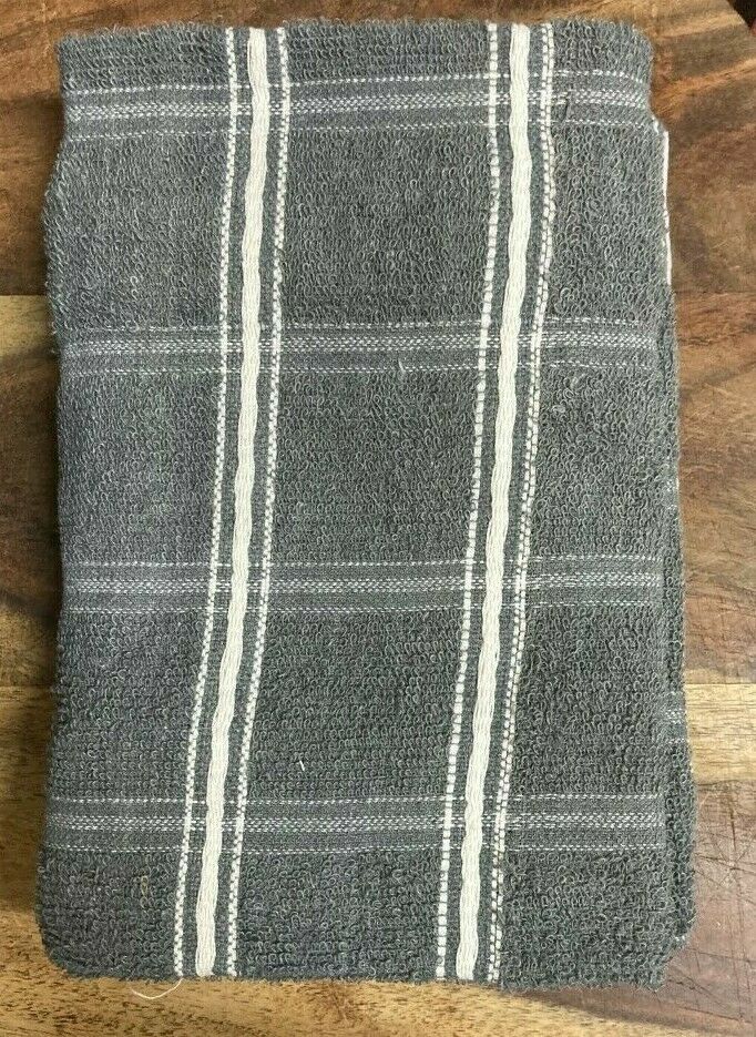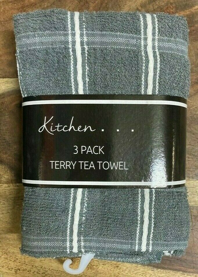 Pack Of 3 Fancy Check Terry Tea Towel Grey White 100% Cotton